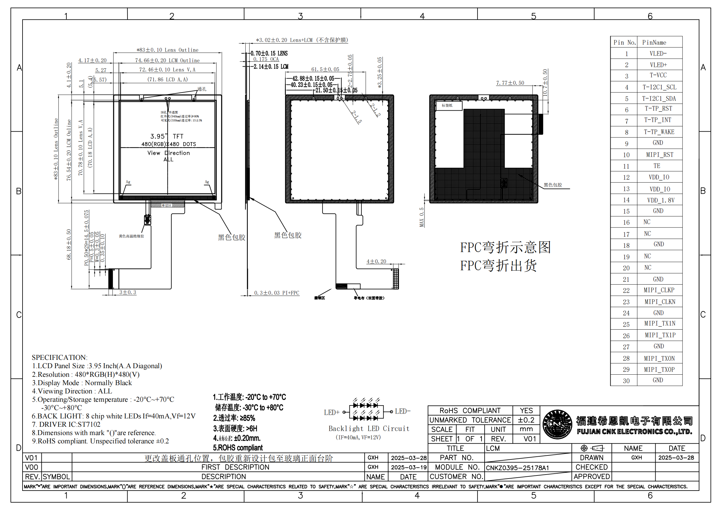 | Temperatura de funcionamiento | -20 ℃ ~ 70 ℃ | Interfaz | Aplicable a MIPI o RGB |