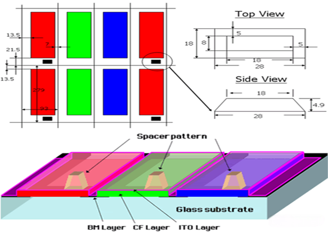 3. Diferencias a nanoescala en el espesor de la película resistente al color de la capa CF (factor central)
