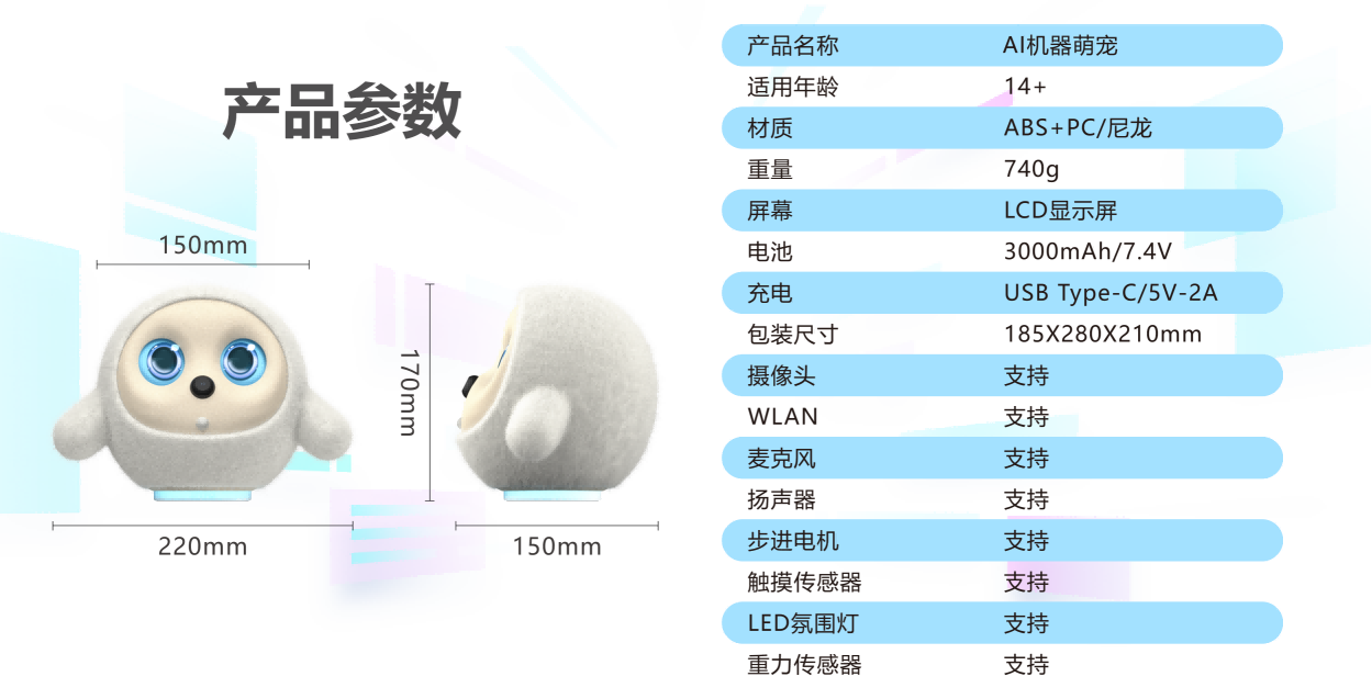 AI Robotic Pet adopta una filosofía de diseño biónico, creando una apariencia táctil cómoda y visualmente amigable con alta afinidad.