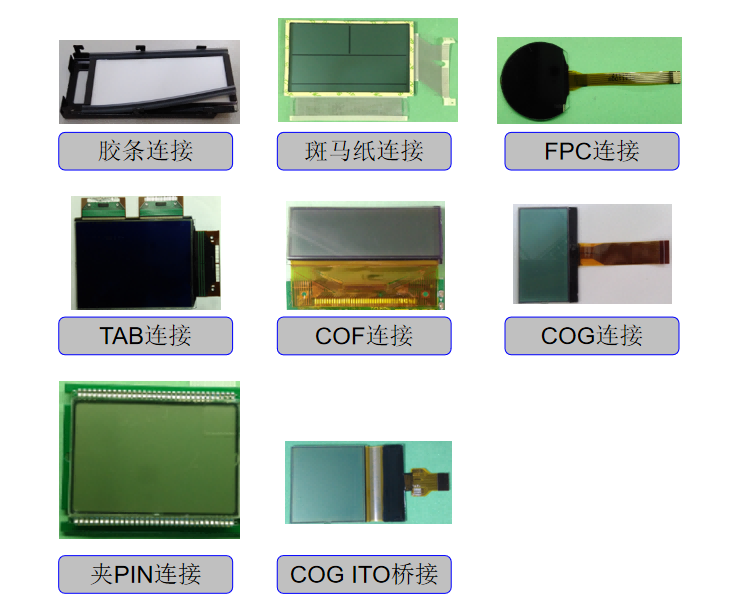 Además, el método de conexión es igualmente crucial. Desde conexiones tradicionales de tira cebra/elastómero hasta conexiones FPC, TAB y COF más avanzadas, podemos seleccionar la solución de conexión eléctrica óptima cuando personaliza los componentes de la pantalla LCD, según sus requisitos de transmisión de señal y diseño espacial.